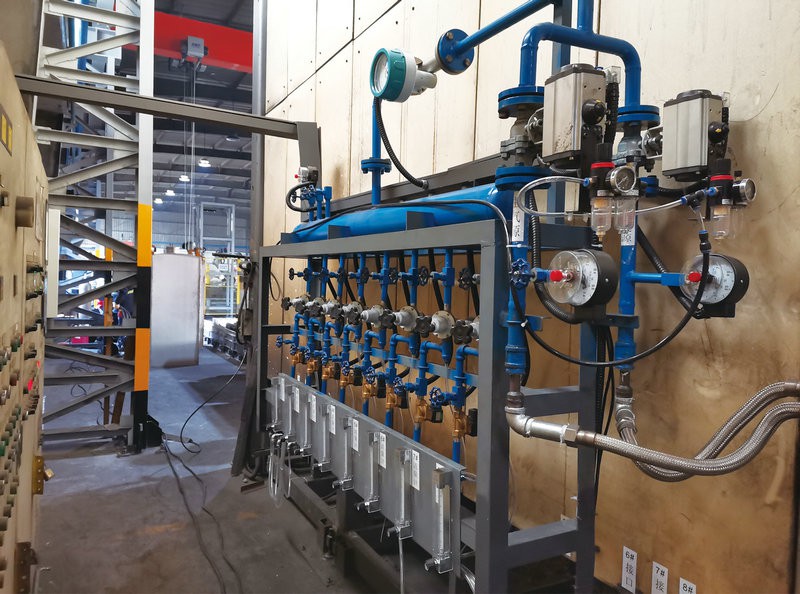 气氛保护炉,由马弗炉演化而成。主要的目的是在高温烧结的情况通入某种特定气体用于特殊热处理,或者对热处理的样品进行保护防止氧化。市场上使用气氛保护多以防止氧化为主。气氛保护炉上通常都会有以下装置,进出气管道,阀门,压力、流量显示装置。现已逐步取代传统埋碳烧成方式。